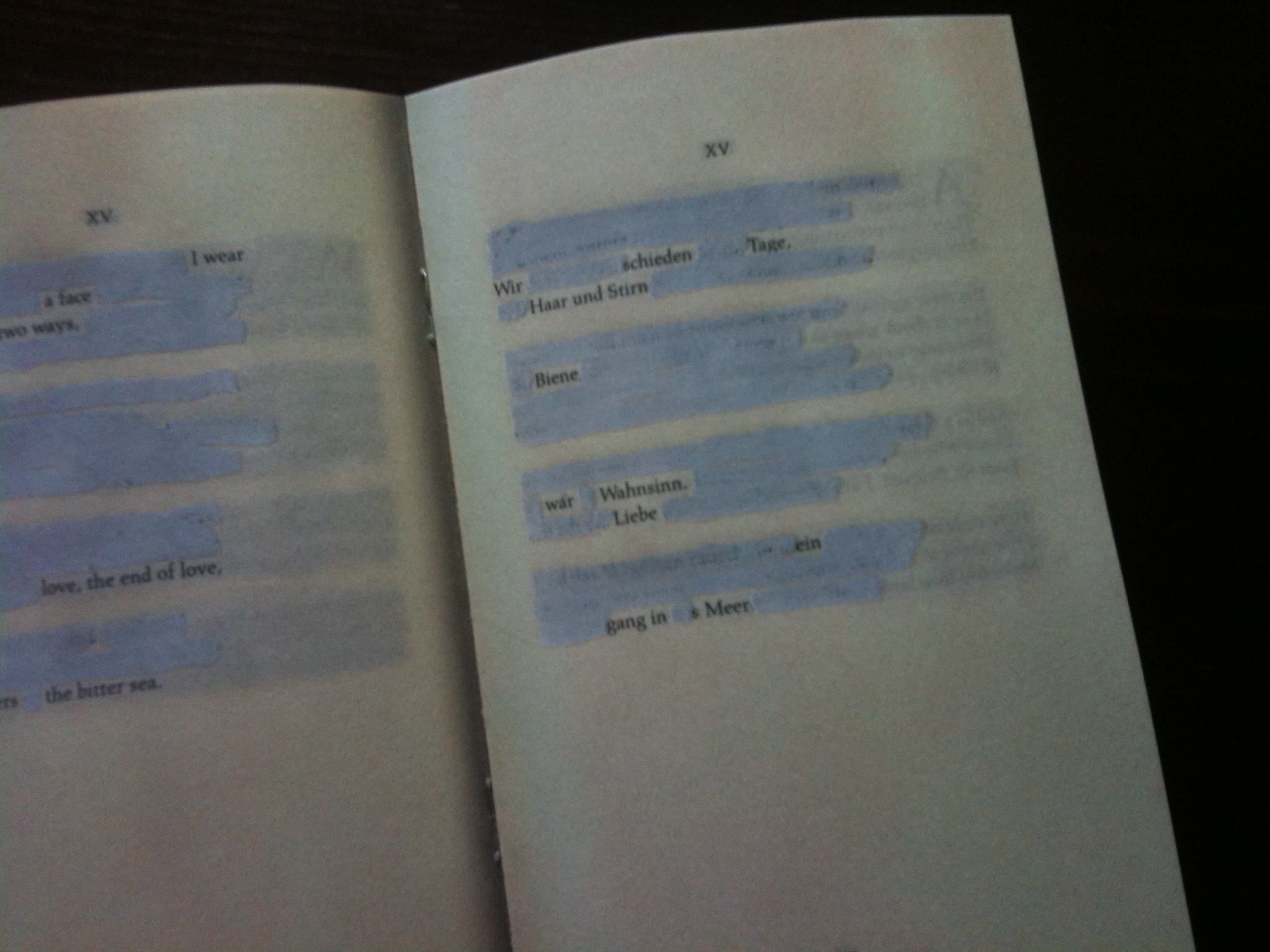 “Sonne From Ort” von Uljana Wolf und Christian Hawkey. Neukomposition von “Sonnets from the Portuguese” von Elizabeth Barrett Browning und der Übersetzung von Rainer Maria Rilke.